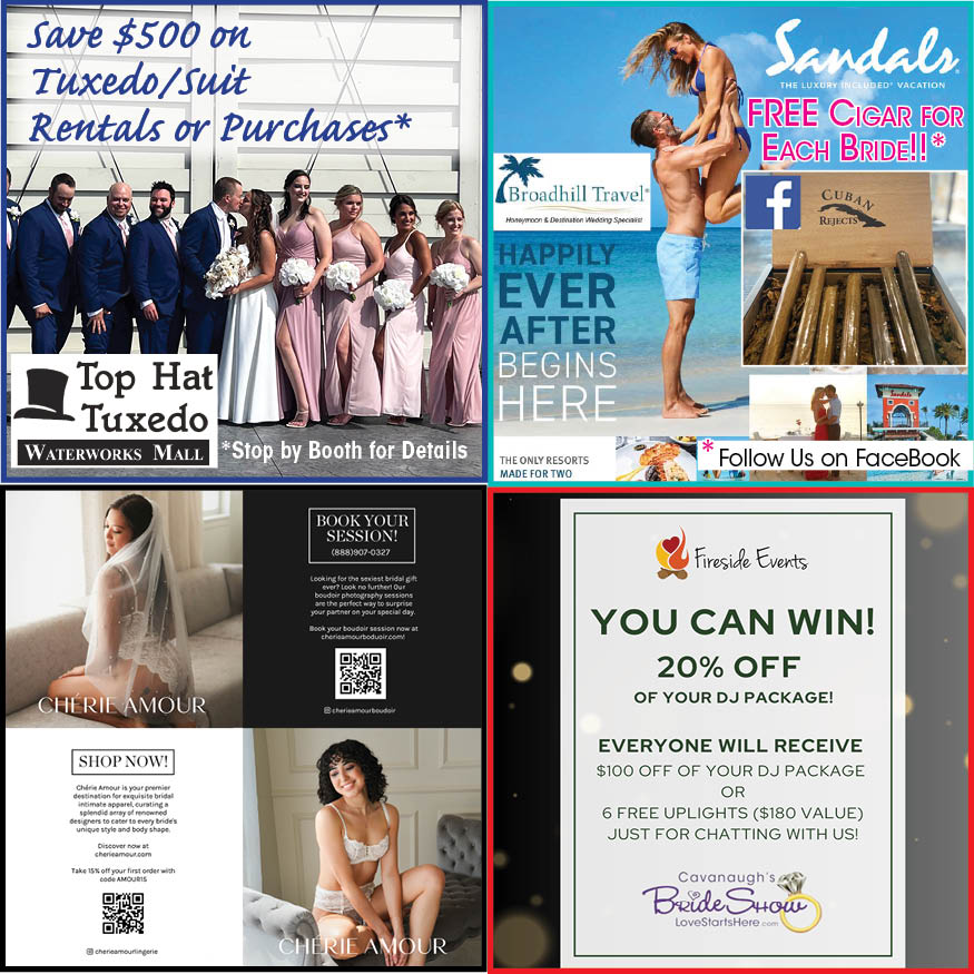 Find Your Perfect REAL WEDDING PRO to Help You with YOUR REAL WEDDING!! In between visiting over 55 wedding professionals, relax and Sample: Wine, BBQ Samples, Food, Cake, Find the perfect Wedding Dress, Visit the Limos, and Much More! From Boutique to Bargain, Unique to Fun, Cavanaugh’s BrideShow has It All in One Place!